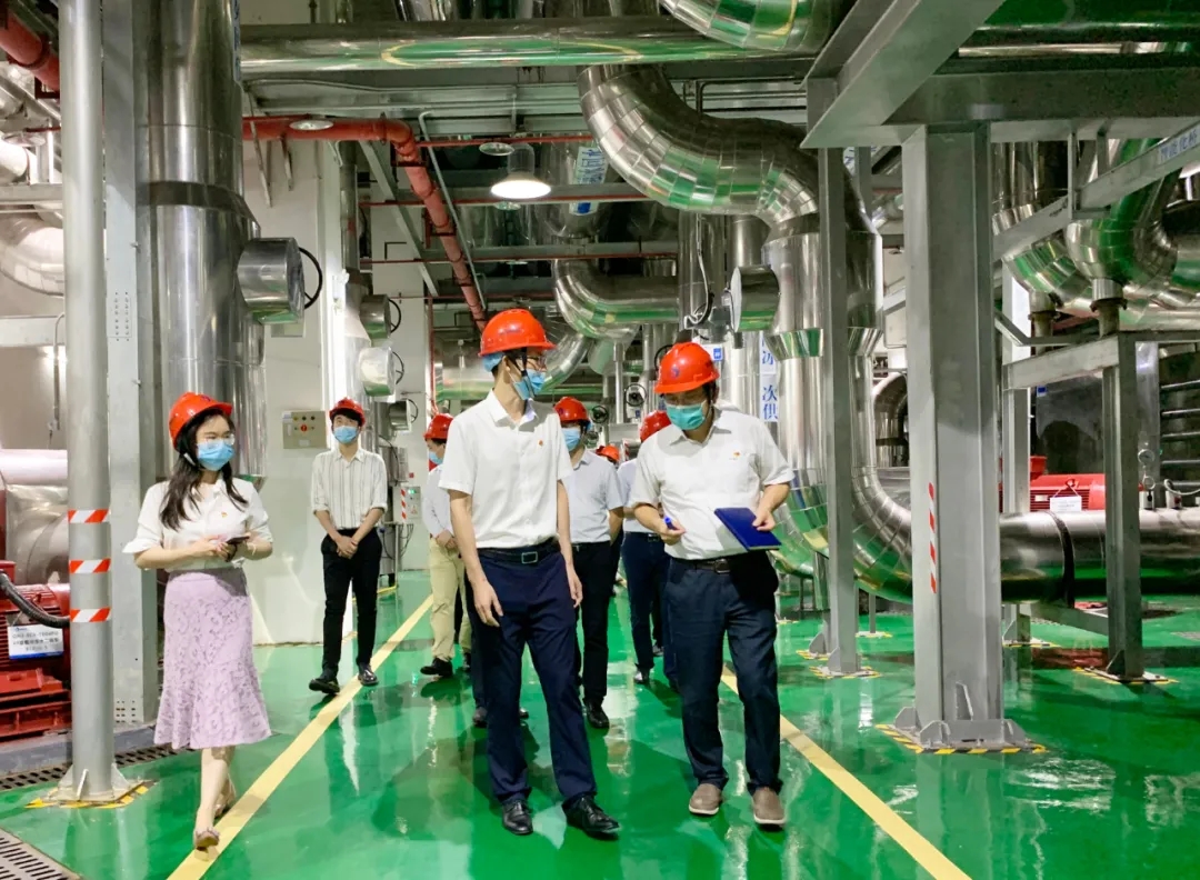 雙方支部黨員首先參觀前海區域集中供冷2号冷站。2号冷站是前海區域集中供冷系統第一個建設投用的冷站,附建于卓越前海壹号地下2層至地下4層,采用冰蓄冷技術,供冷範圍覆蓋桂灣片區20餘棟建築,服務建築面(miàn)積可達213萬平方米,節能(néng)率可達12.3%,于2017年投入運行,至今已“24小時安全穩定運行”三年有餘,是前海能(néng)源踐行城市能(néng)效提升先行示範邁出的第一步。