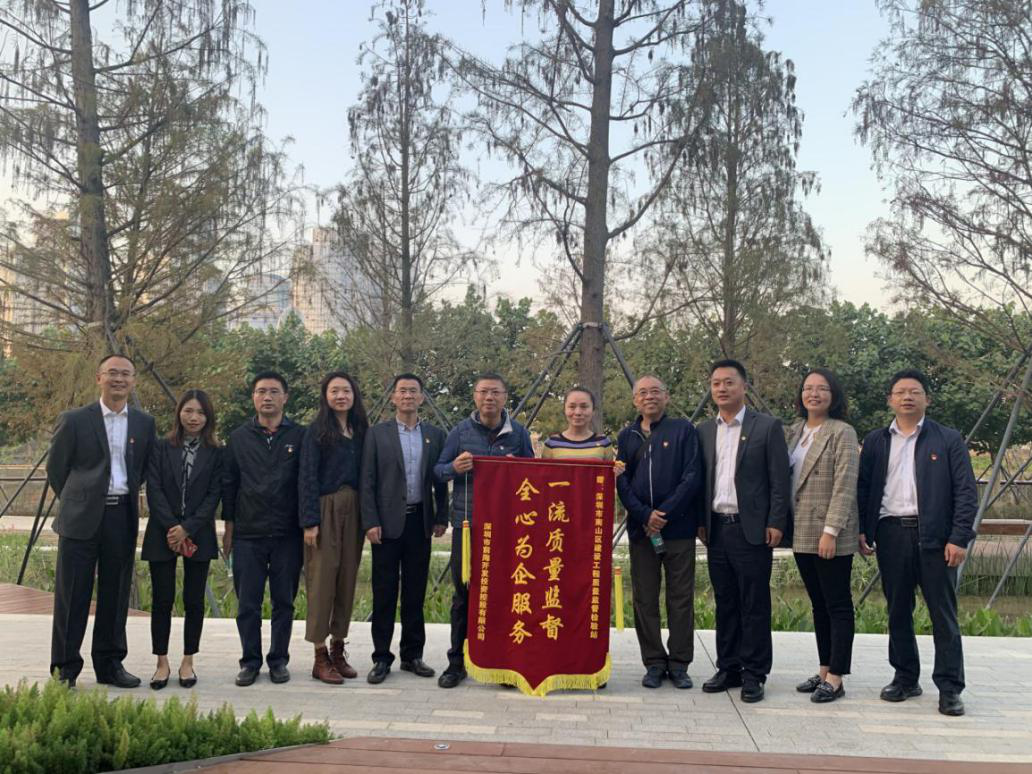 “看似尋常最奇崛,成(chéng)如容易卻艱辛”,項目在哪裡(lǐ),黨員先鋒就出現在哪裡(lǐ)。通過(guò)發(fā)揮基層組織戰鬥堡壘作用和黨員骨幹先鋒模範作用,三方緊密協作,高效有序推動項目工作,日以繼夜、風雨兼程,努力改變前海城市面(miàn)貌。爲感謝南山區質監站長(cháng)期以來對(duì)前海控股的指導支持,張小妹同志代表控股公司向(xiàng)南山區質監站贈送了一面(miàn)錦旗。