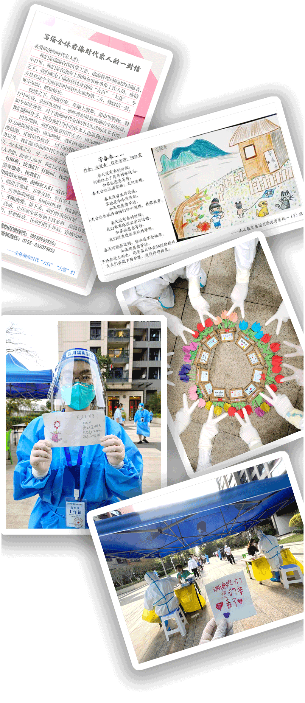 小區居民們也紛紛對(duì)這(zhè)些“走心”之舉給出積極回應,在小區内居住的前海管理局工作人員帶動下,居民們越來越配合采樣(yàng),小區内不斷有黨員群衆要求加入志願服務隊伍,熱心業主主動捐贈飲品、食品80餘箱,小朋友們給“大白”“大藍”寫信、跳舞、唱歌、送手工花束等達30餘次,全體志願者備受鼓舞和感動。