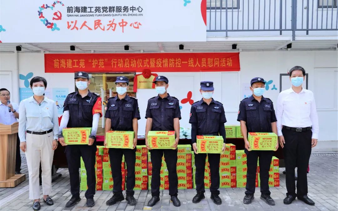 劉軍在緻辭中指出,前海建工苑承接了4000多名工友集中居住與工作,在落實前海合作區疫情防控要求,夯實苑區疫情防控及安全管理防線,用心用情服務前海建設工人方面(miàn)發(fā)揮了重要作用。出席領導随後(hòu)一同見證“前海建設工人之家”牌匾挂牌和黨員示範崗(黨員先鋒隊)授旗,現場慰問了前海建工苑管理人員、優秀安保人員代表。
