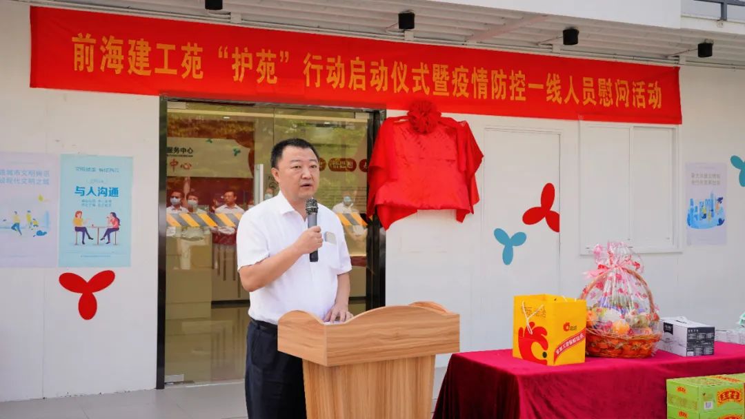 爲落實前海合作區黨工委關于疫情防控及安全管理工作要求,進(jìn)一步激發(fā)黨員群衆全力投入到疫情防控、安全維穩工作中, 7月22日上午,前海建工苑舉行 “護苑”行動啓動儀式暨安全管理溝通會。組織人事(shì)部(機關黨委)副部長(cháng)劉劍林,前海廉政監督局二級調研員宋麗,前海控股黨委副書記、董事(shì)史兆倉,總經(jīng)理助理劉軍等出席活動。