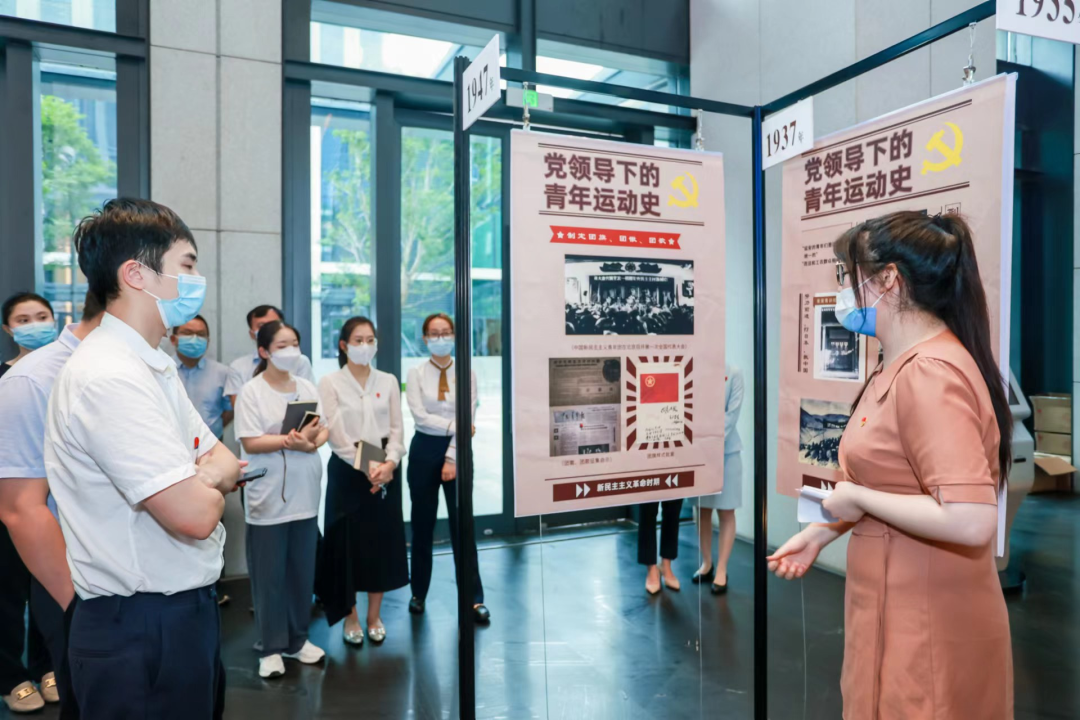 前海控股置業自有投資項目黨支部組織黨員與團員青年一起(qǐ)參觀《曆史的軌迹》系列之黨領導下的青年遠動史圖片展,了解中國(guó)共産主義青年團成(chéng)立100周年來的重要人物、重要時刻、重要事(shì)迹。