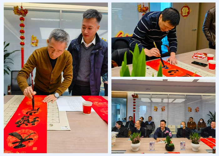 本次活動特邀深圳市政協委員、北京大學(xué)深圳校友會書畫協會創會會長(cháng)汪書福、深圳市前海數字城市科技有限公司董事(shì)長(cháng)常海現場爲幹部職工揮毫潑墨,爲廣大職工寫春聯送祝福。