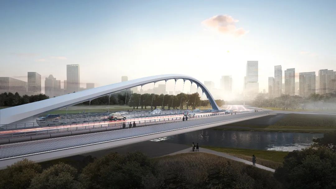 項目既是城市路網的節點工程,亦是聯系前海三灣片區與寶中片區的重要通道(dào),對(duì)提升兩(liǎng)片區交通聯系效率有重要作用,同時也是雙界河上的地标性建築。項目在設計階段已綜合考慮交通、景觀、防洪、生态休閑等功能(néng),將(jiāng)橋梁功能(néng)與形式完美結合,與周邊建築共同構成(chéng)前海城市濱海天際線。