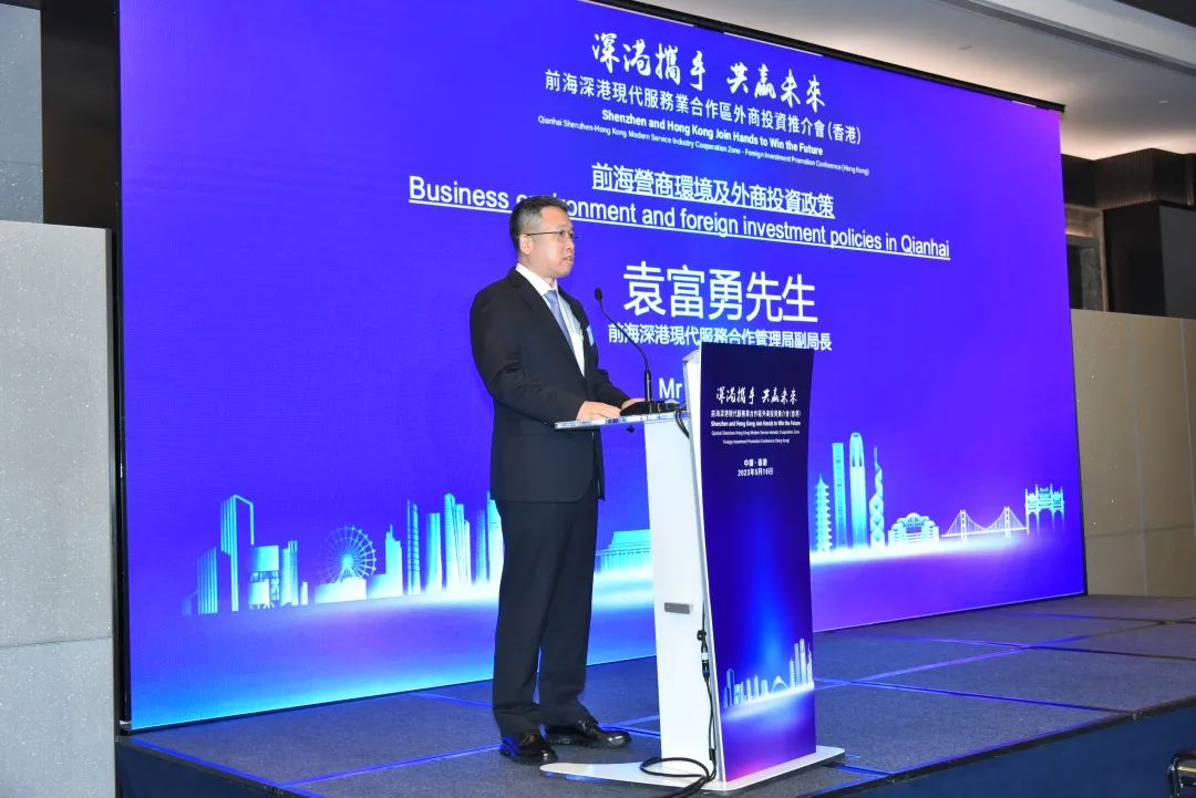 會上,前海管理局副局長(cháng)袁富勇詳細介紹了前海開(kāi)發(fā)開(kāi)放情況和外商在前海的投資機遇。