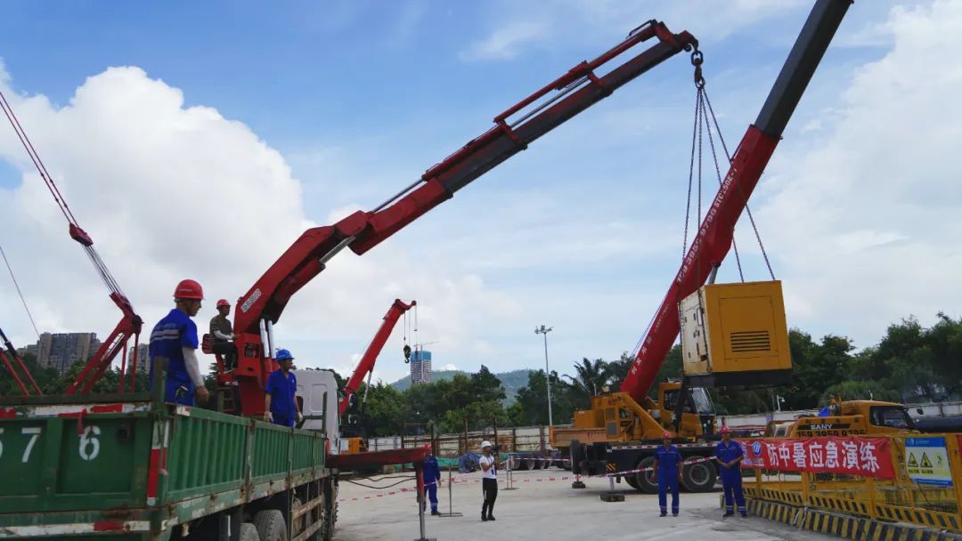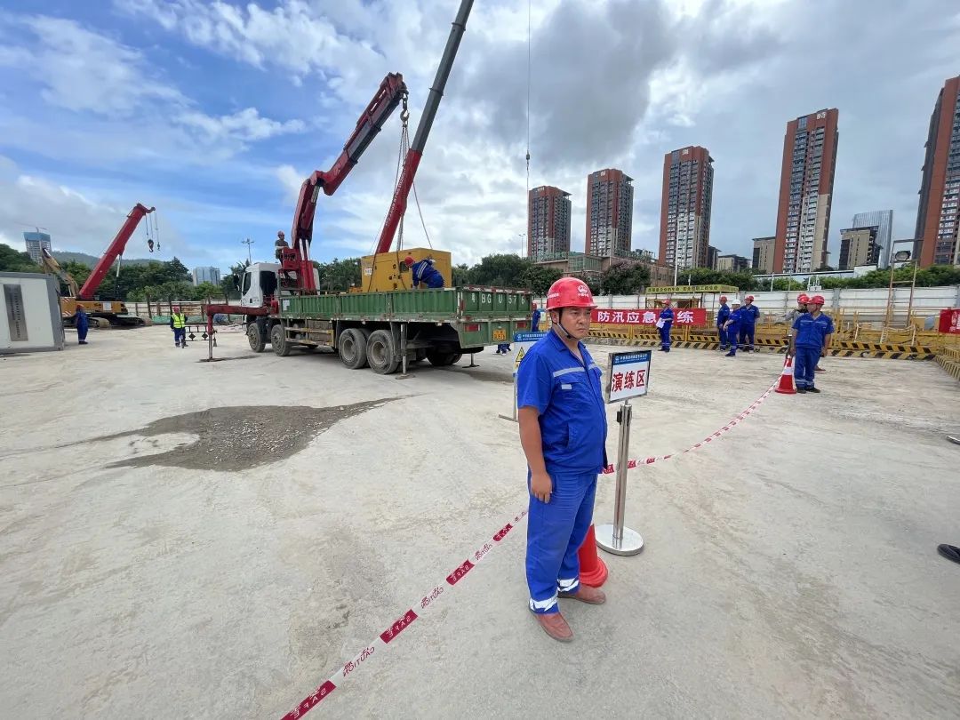 現場,前海建投集團和中鐵隧道(dào)局聯合應急搶險救援隊負責實施演練。演練以前海某項目發(fā)生突發(fā)事(shì)件,聯合應急搶險救援隊出動救援爲背景,重點演練防汛(供電系統布設、積水抽排)、防觸電(封閉警戒、心肺複蘇)、防中暑(受限空間内吊運傷者、中暑急救措施)等項目。本次演練共計30餘人參演,共出動随車吊、汽車吊、發(fā)電機、配電箱、潛水泵等應急設備、物資50餘件。在前海建投集團的協調指揮下,各相關單位及各應急小組密切合作、協同作戰,有效控制了各項險情,圓滿完成(chéng)應急搶險任務。