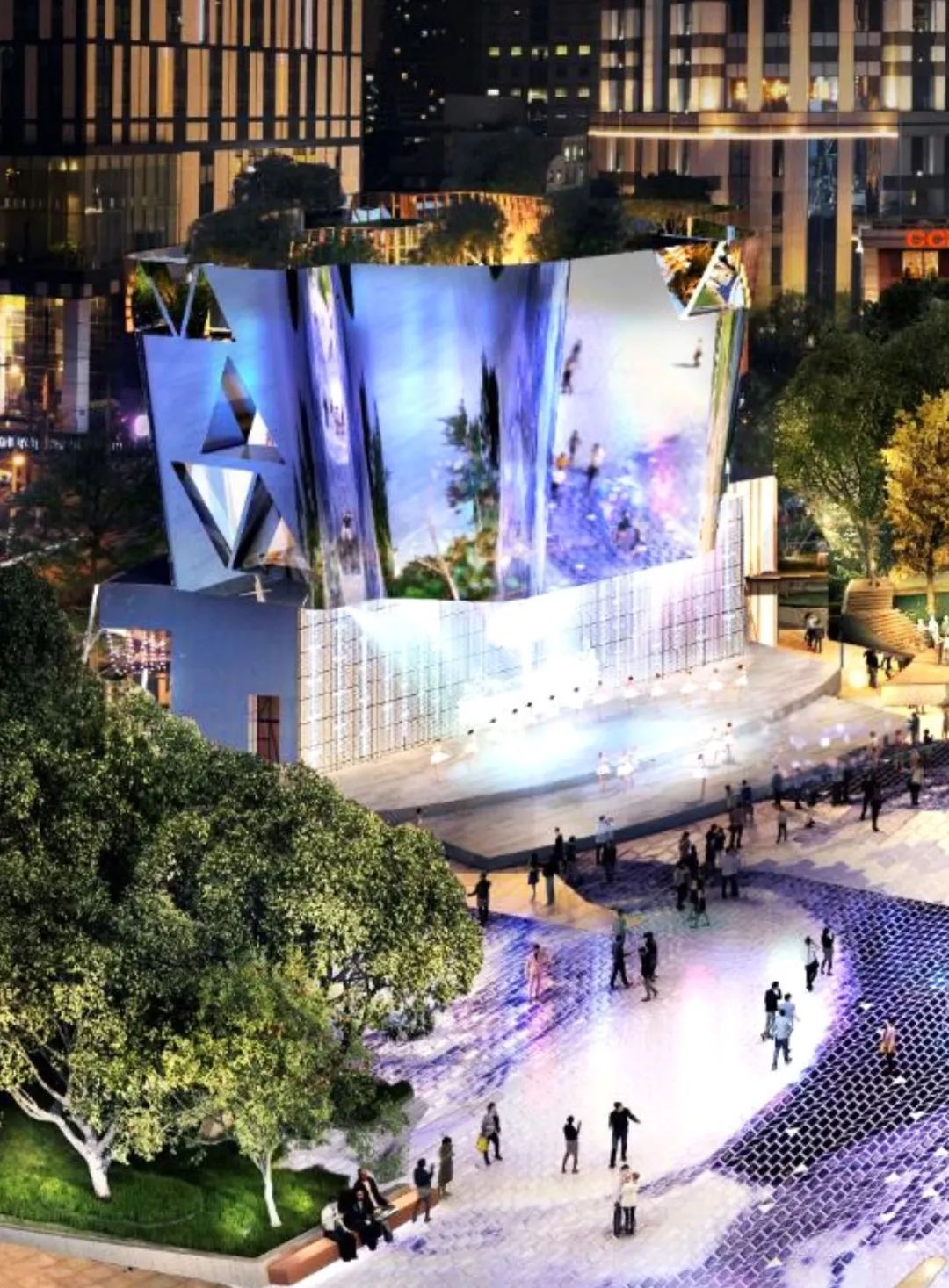 未來,世紀廣場將(jiāng)聯動周邊建築立面(miàn)大屏,結合燈光景觀表演,打造立體環屏秀,展現虛實結合的多維度視覺體驗。環屏秀將(jiāng)融合自然景觀、元宇宙等藝術風格,跨界聯合音樂、舞蹈、數字新媒體藝術、照明設計等領域,打造新數字IP,創建新消費場景。