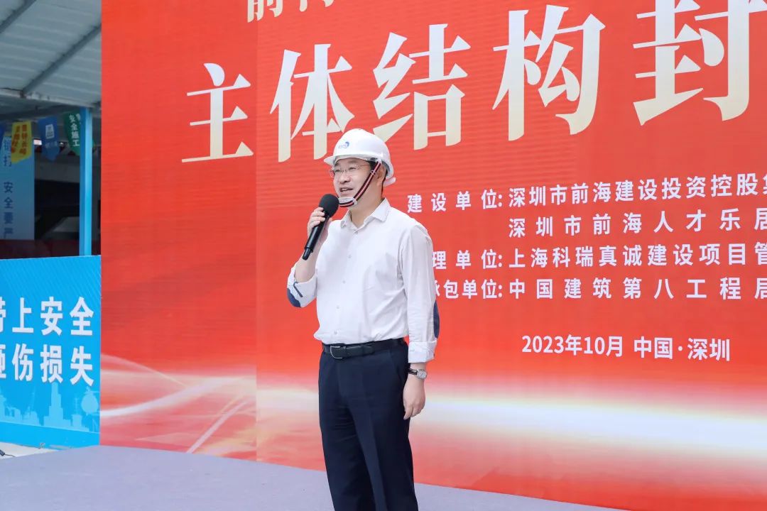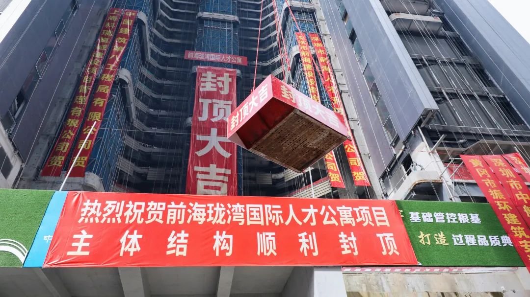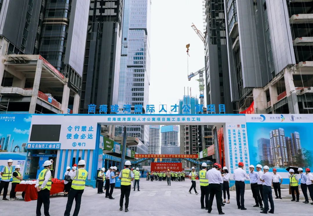 10月17日上午,随著(zhe)最後(hòu)一方混凝土順利澆築完成(chéng),全國(guó)首個裝配率超70%且滿足國(guó)标A級的超高層公寓——前海珑灣國(guó)際人才公寓項目主體結構順利封頂,标志著(zhe)項目進(jìn)入全新階段,距2024年竣工節點向(xiàng)前推進(jìn)了一大步。項目建設單位前海建投集團黨委書記、董事(shì)長(cháng)李榮生,施工單位中建八局副總經(jīng)理、華南分局局長(cháng)韓興争等出席封頂儀式,活動還(hái)特别邀請了前海管理局建設管理處現場指導。