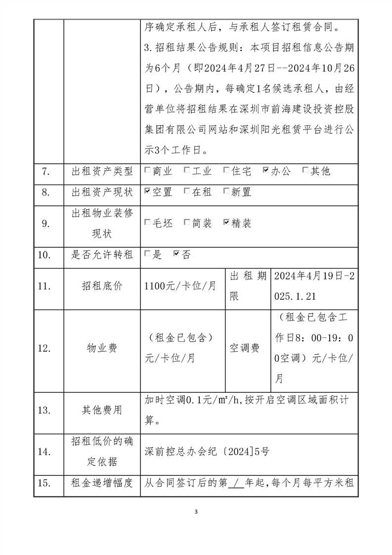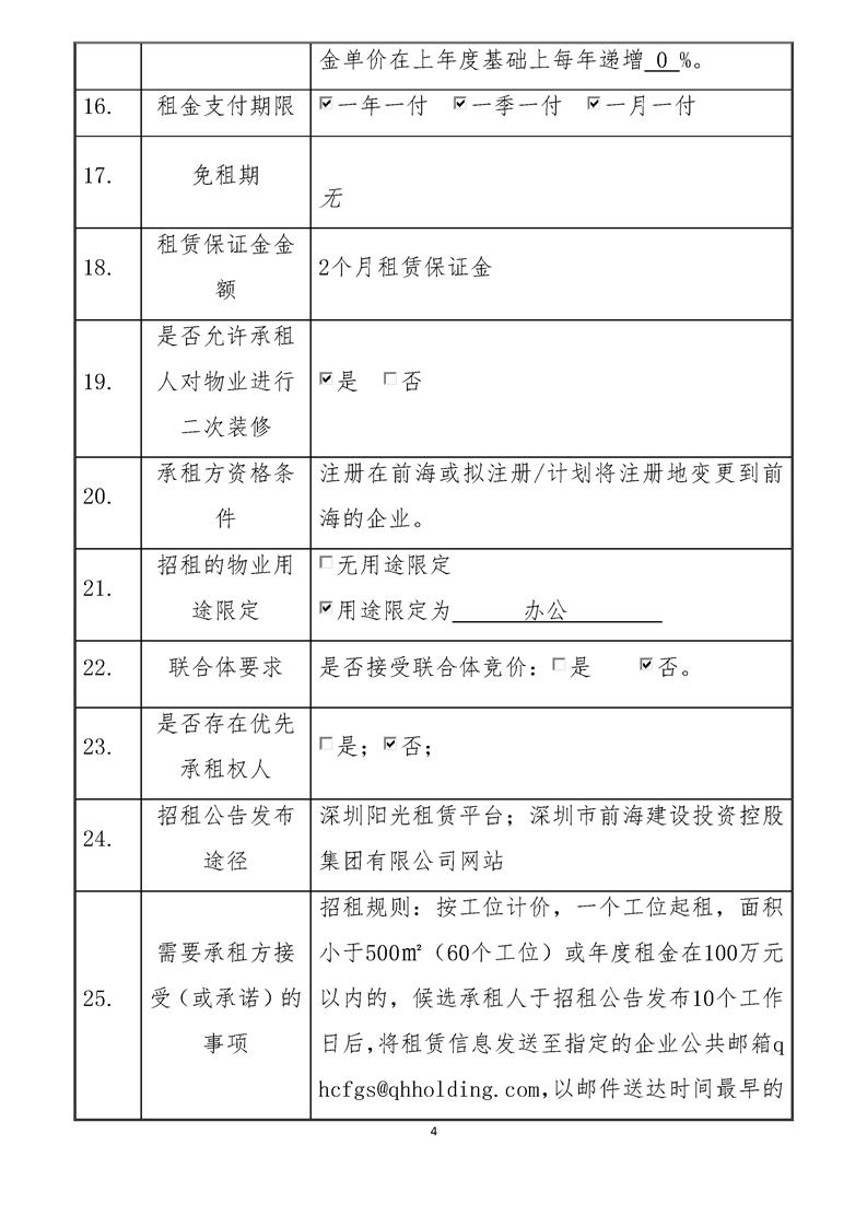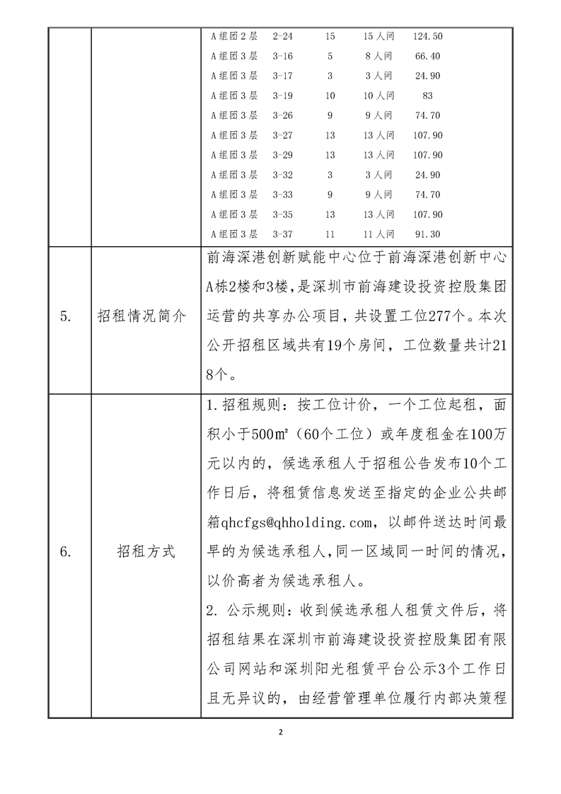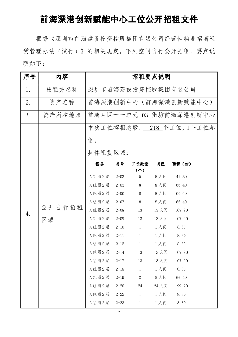 前海深港創新賦能(néng)中心工位公開(kāi)招租文件