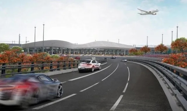 其次,在收費站兩(liǎng)側,高大的喬木與鳳凰木形成(chéng)圍合之勢,爲車行者提供豐富視覺層次感的同時,也賦予寶安國(guó)際機場收費站莊重的儀式感。
