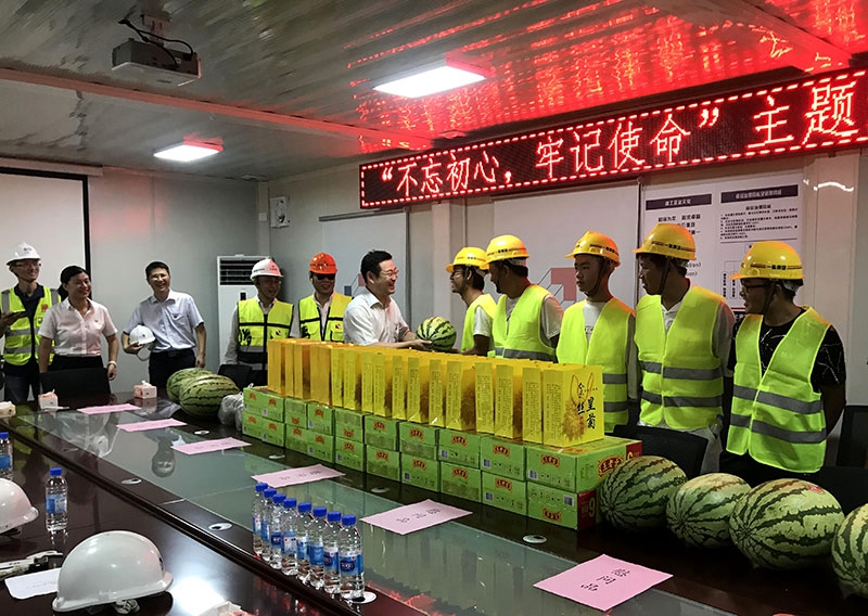 啓動儀式後(hòu),結合前海控股黨委“不忘初心、牢記使命”主題教育工作安排關于“深入項目一線調研”等要求,前海樂居支部還(hái)于項目現場舉行了“炎炎夏日送清涼”活動,爲項目一線工人送去了涼茶、避暑藥品等實用物資,并與項目施工單位開(kāi)展“不忘初心、牢記使命”主題教育座談。通過(guò)黨群共建活動,增進(jìn)了雙方情感紐帶聯系交流,增強了項目團隊凝聚力和戰鬥力。