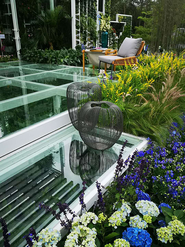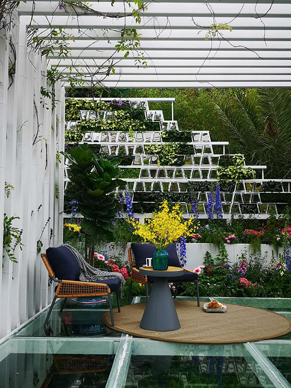 “我們在設計中非常注重環保理念。展園基礎通過(guò)預制桁架進(jìn)行搭建,展後(hòu)可全部回收,展園景觀面(miàn)層回收利用率能(néng)達到 80% 以上。花卉植物以小單元模塊種(zhǒng)植方式,展後(hòu)花卉可以贈送給市民遊客,景觀鋪裝有白色鐵方通骨架和夾膠玻璃組成(chéng),回收率可達 60%。”危薇介紹,展園構築層由預制構件和基礎鋼制方通搭建,城市客廳采取了預制構件和成(chéng)品室内擺件,綠心采取了預制構件和模塊種(zhǒng)植,100%可回收。
