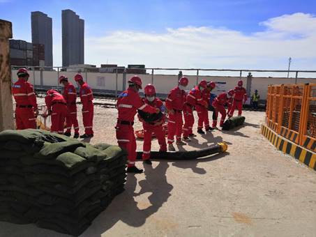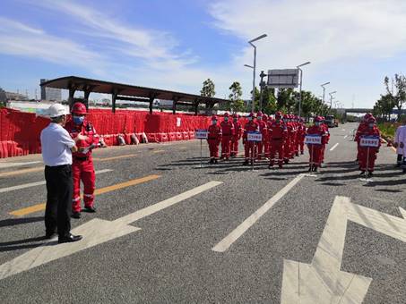 演練采取場景推送的形式,以市氣象局發(fā)布台風橙色、暴雨紅色預警,前海區域台風、暴雨降臨爲演練背景,推送了河水漫過(guò)堤壩、河水灌入基坑、基坑内人員受傷、倒伏樹木占道(dào)等4個應急場景。接到災情報告後(hòu),公司啓動應急預案,協調“前海控股公司/中鐵隧道(dào)局聯合應急搶險救援隊”出動搶險隊伍、搶險物資裝備和車輛設備等,迅速集結、高效開(kāi)展加固河堤、基坑積水抽排、人員轉移救援、交通警戒、倒伏樹木清理等應急處置工作。演練共出動應急隊員30餘人,應急指揮車、皮卡車、大巴等5輛,水泵、鏈鋸、防汛砂袋等100餘件。