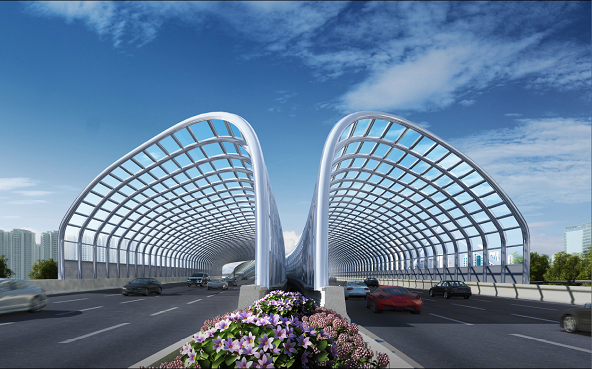 按照深圳市人居環境委員會環境影響評價批複,月亮灣立交-桂廟路主線跨線橋工程全線設置770米長(cháng)全封閉聲屏障。隔音屏包含主體結構、電氣、消防、通風、監控及景觀照明,隔音屏工程主體結構用鋼4000噸、亞克力隔音闆30000平方米,總投資概算22134.67萬元。