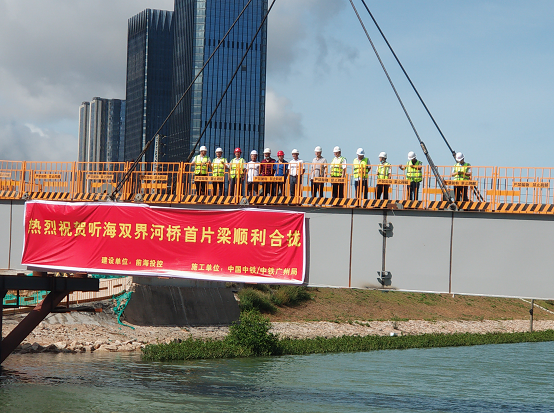 前海合作區聽海雙界河橋工程首片鋼箱梁順利合攏
