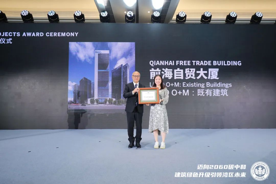 近日,前海産發(fā)公司前海自貿大廈項目組受邀前往廣州中國(guó)進(jìn)出口交易會展館,參加以“建築綠色升級引領灣區未來”爲主題的主峰會,并榮獲大灣區LEED鉑金級項目授牌。