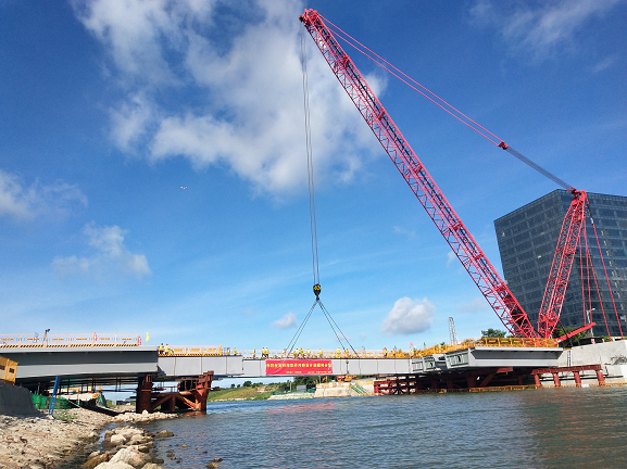 前海合作區聽海雙界河橋工程首片鋼箱梁順利合攏2020.07.21