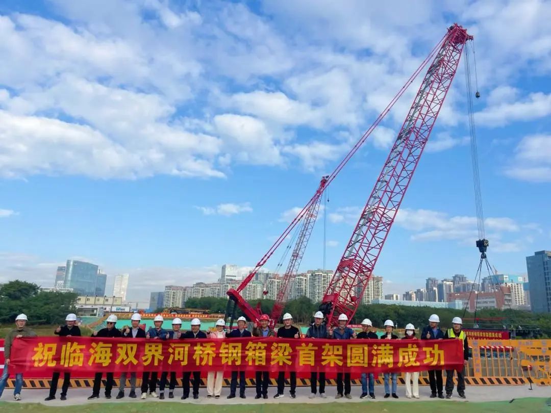 近日,前海合作區臨海雙界河橋工程(9号橋)鋼箱梁首節段順利完成(chéng)起(qǐ)吊安裝。伴随著(zhe)首片鋼箱梁構件被(bèi)吊車緩緩吊起(qǐ),并精準無誤地“停靠”在既定鋼支撐平台之上,标志著(zhe)項目工程進(jìn)度取得突破性進(jìn)展,正式進(jìn)入上部構造施工階段。
