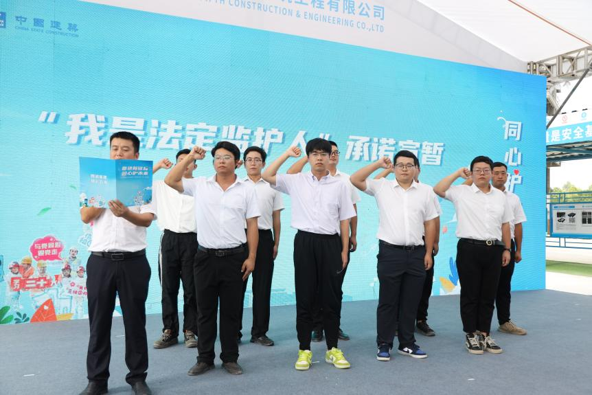 近日,“奮進(jìn)新征程·同心護未來”2023 年全國(guó)農村留守兒童關愛保護“百場宣講進(jìn)工地”活動(第 70 場)在前灣府施工總承包工程項目現場舉辦,東莞市總工會黨組成(chéng)員、經(jīng)審會主任陳偉鵬,勞動保護部部長(cháng)王偉雄,前海産城公司工程技術部、中建四局五公…