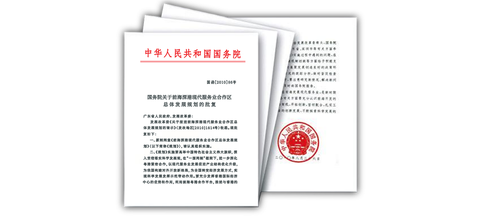 前海控股的成(chéng)立寫入國(guó)務院文件《國(guó)務院關于前海深港現代服務業合作區總體發(fā)展規劃的批複》中(國(guó)函 [ 2010 ] 86号),承載重大使命,踐行國(guó)家戰略。